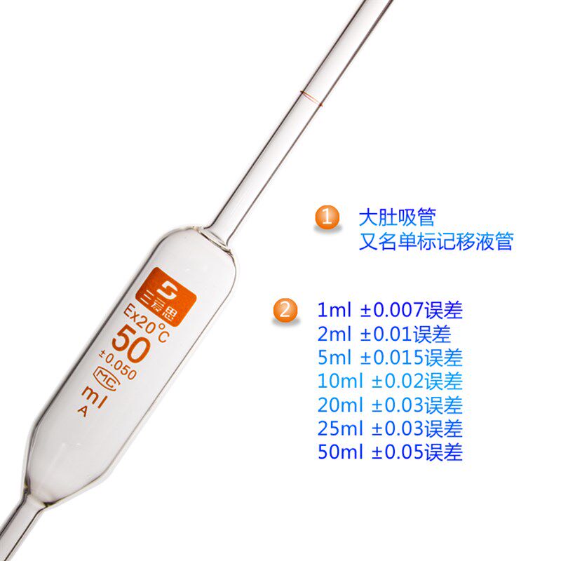 📚 三爱思移液管级1-ML刻度大肚吸管环标线单标线吸量管可过检