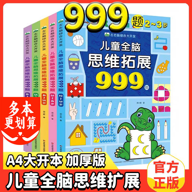 📚 左右脑综合大开发儿童全脑思维拓展训练999题2-3-4-5-6-7岁幼儿早教智力全脑开发幼儿园小中大班数学思维逻辑训练宝宝专注力益智书