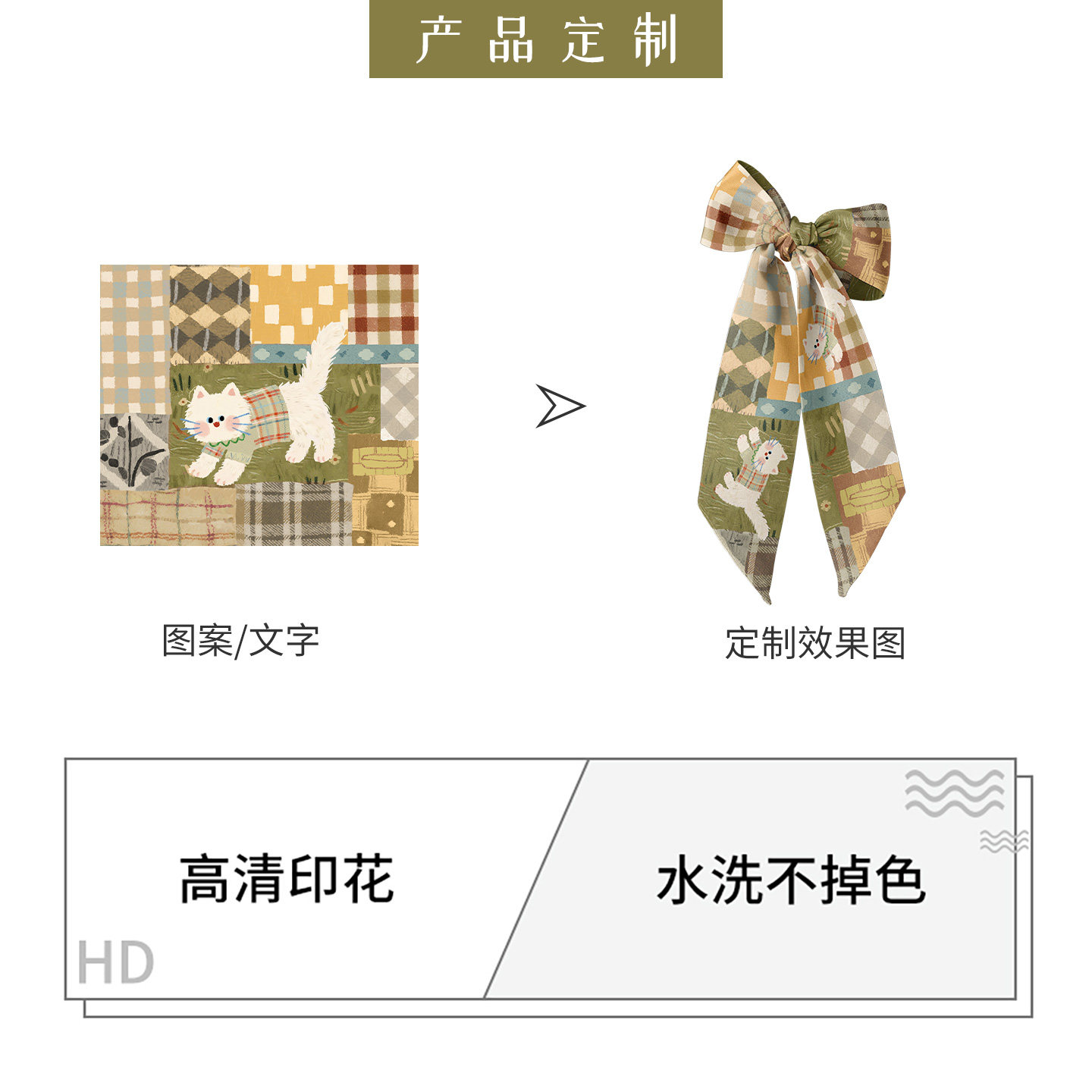 📚 印你所想原创秋游小猫长条丝巾系脖国风中式颈饰绑包高级感绑发