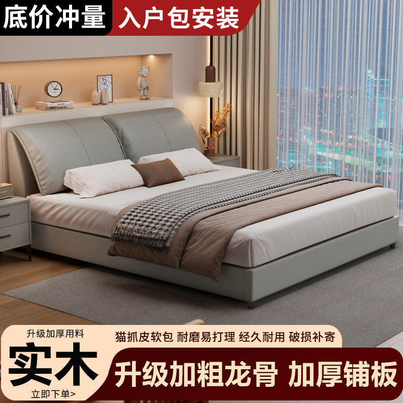 📚 实木床皮艺床大象耳朵现代简约主卧高端软包大床1米8双人床1米5床