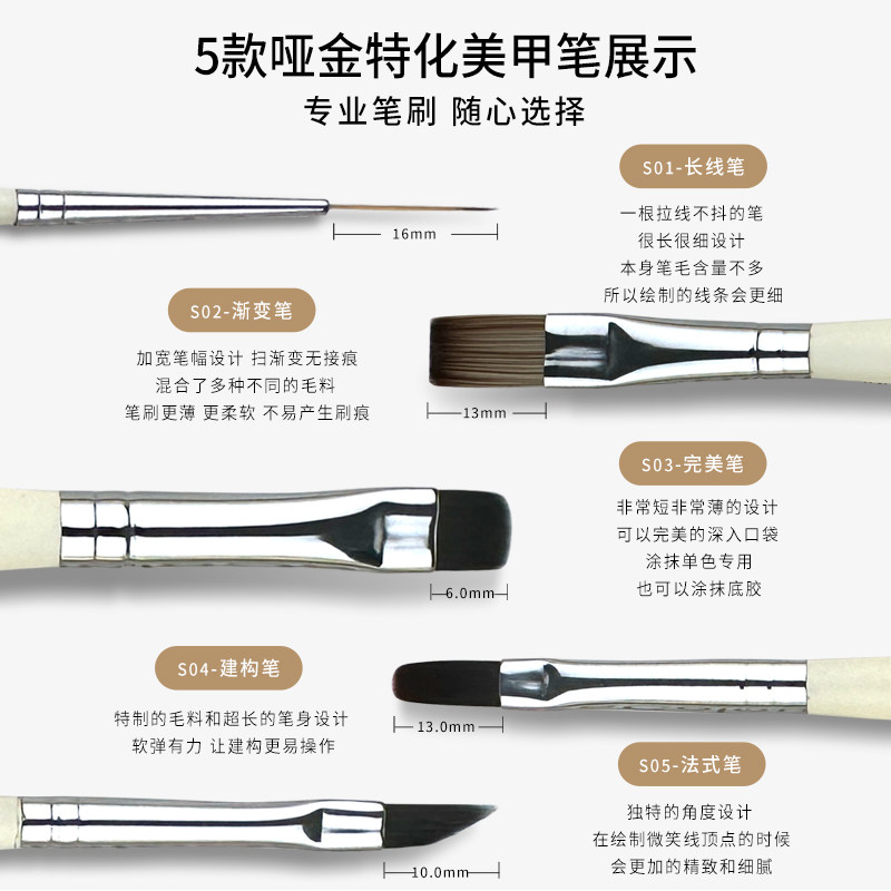 📚 yeze叶梓美甲笔刷套装专业彩绘拉线笔纹理渐变晕染万能平头光疗笔