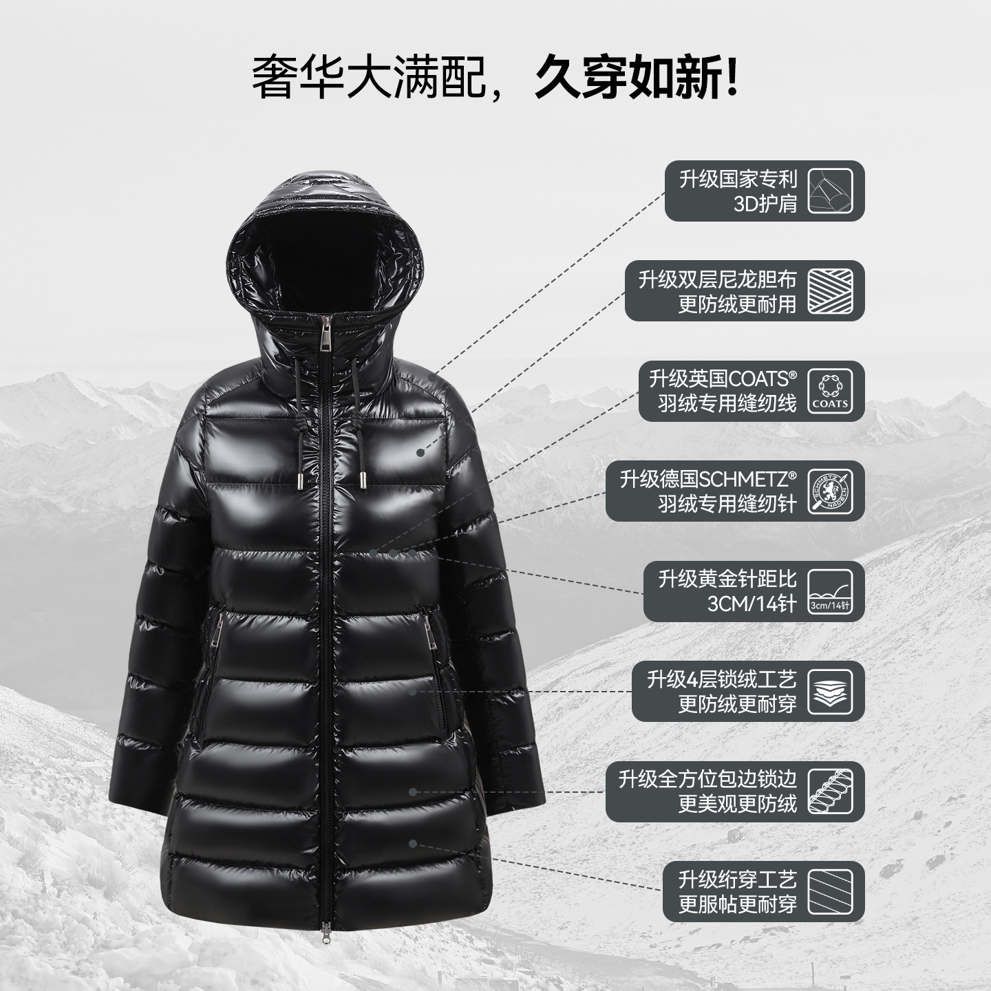 📚 蒙口羽皇加拿大进口98鹅绒女神A字中长版修身显瘦减龄羽绒服9029