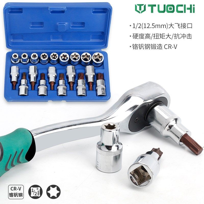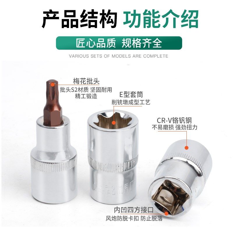 📚 1/2内六花E型套筒组套6角梅花型套筒19件花键套筒组汽修专用工具