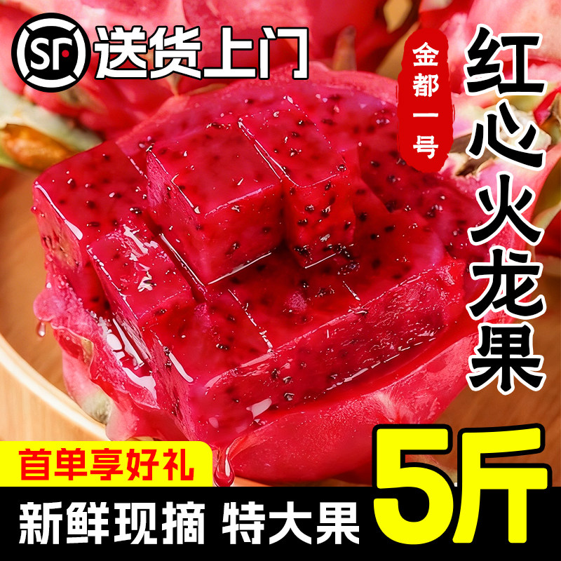 📚 海南金都一号红心火龙果5斤整箱大果新鲜应当季红肉密宝水果包邮3