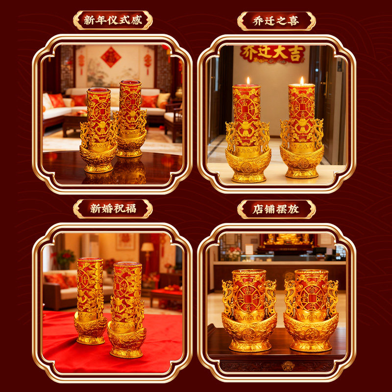 📚 元宝过年水晶蜡烛春节拜神供佛结婚乔迁红色烛供奉家用无烟酥油灯