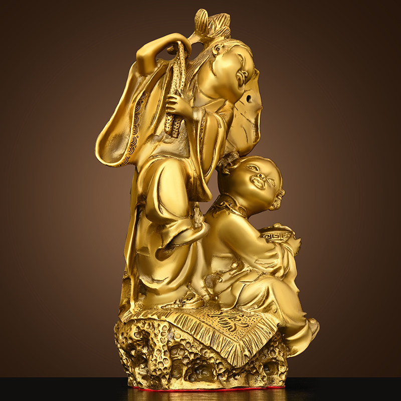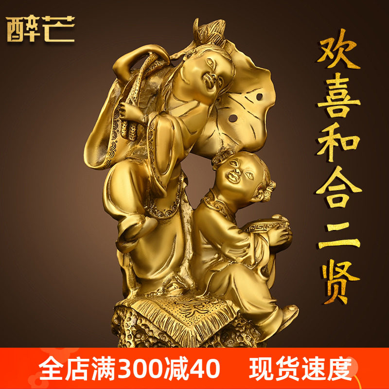 📚 黄铜和合二贤摆件 家居客厅卧室桌面和合二圣装饰结婚工艺礼品