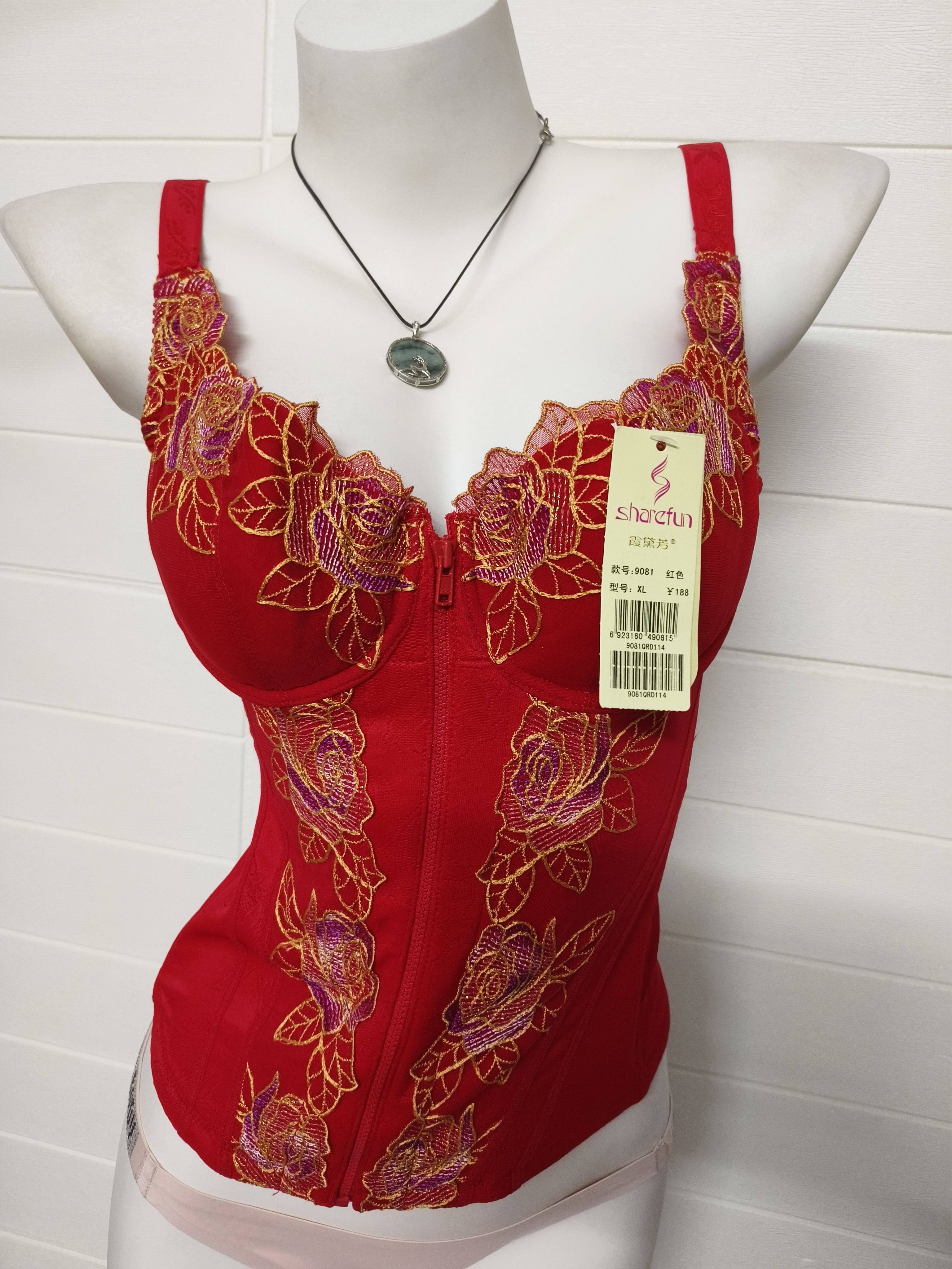 📚 女网纱暗纹提花双层加压文胸一体骨衣拉链排扣塑身衣外穿款