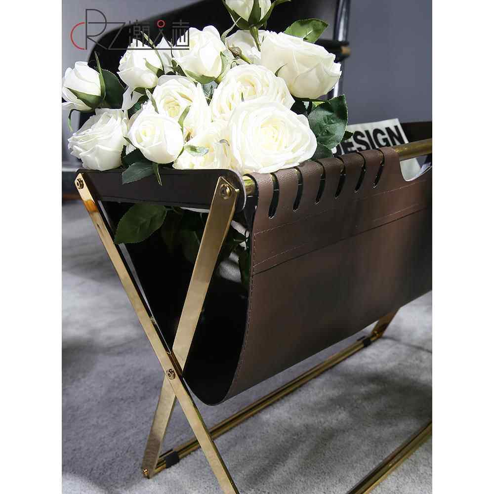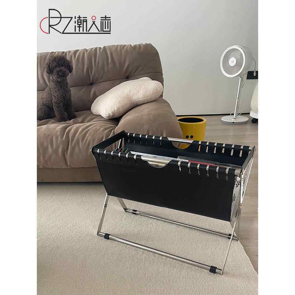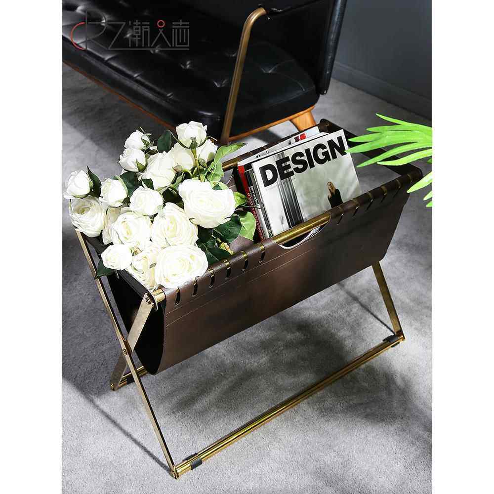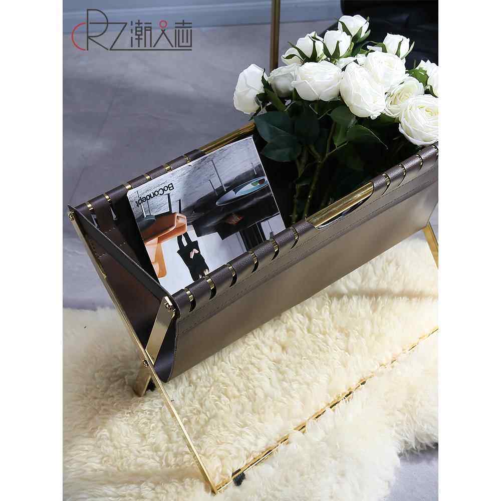 📚 北欧不锈钢皮革书报架落地储物架子家用杂志收纳架报纸报刊置物架