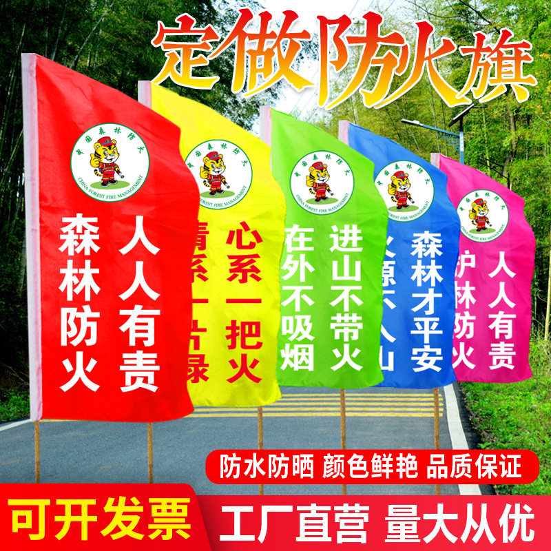📚 森林防火安全警示旗刀旗彩旗广告旗定制旗帜定做虎威威护林防火宣传旗班旗队旗中铁施工公司标志logo旗帜订制