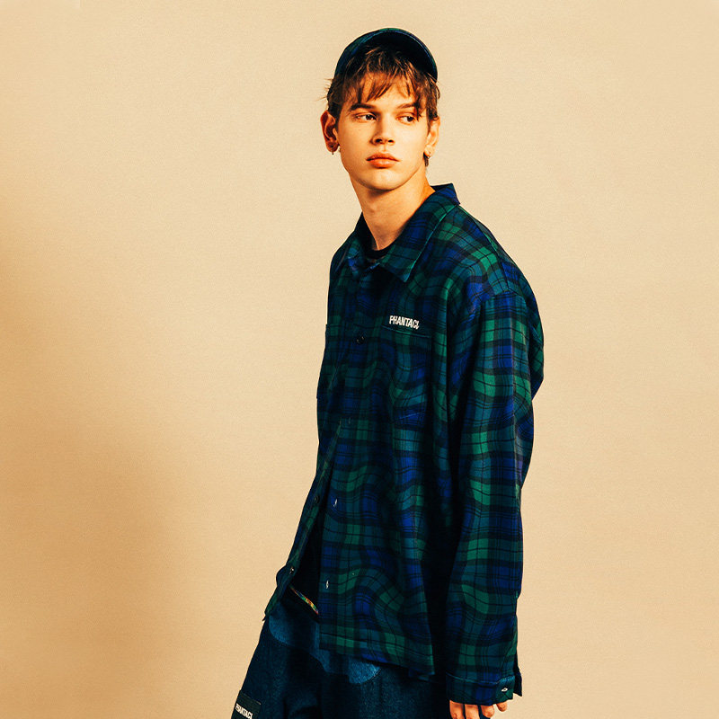 📚 PHANTACi范特西 周杰伦潮牌 WAVE PLAID SHIRTS 夏季长袖衬衫男士