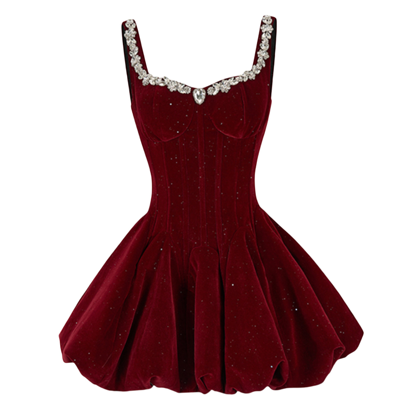 💃"惊艳!自制新年战袍,法式设计感千金红色丝绒水钻收腰气质蓬蓬裙连衣裙,券后价128,你值得拥有!"