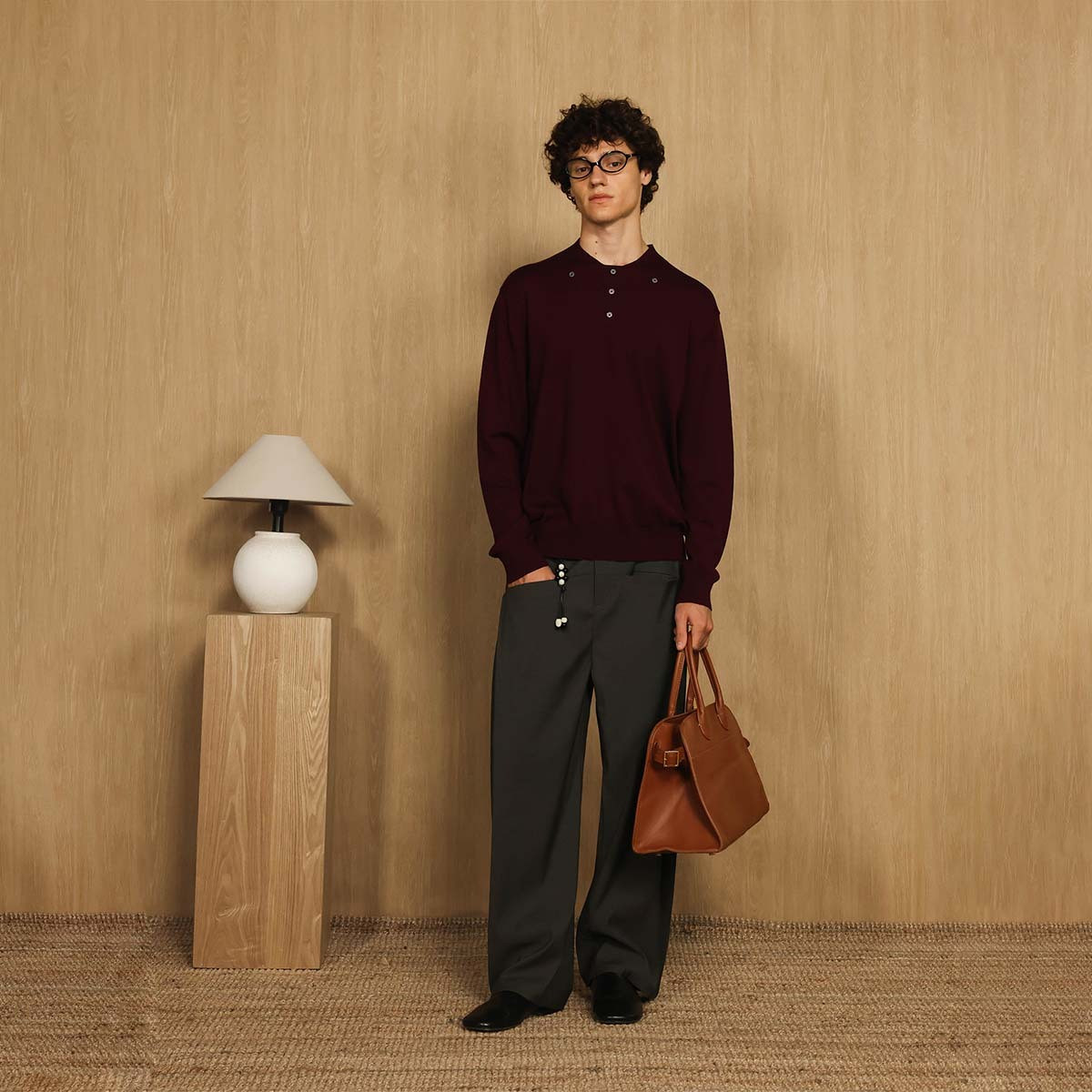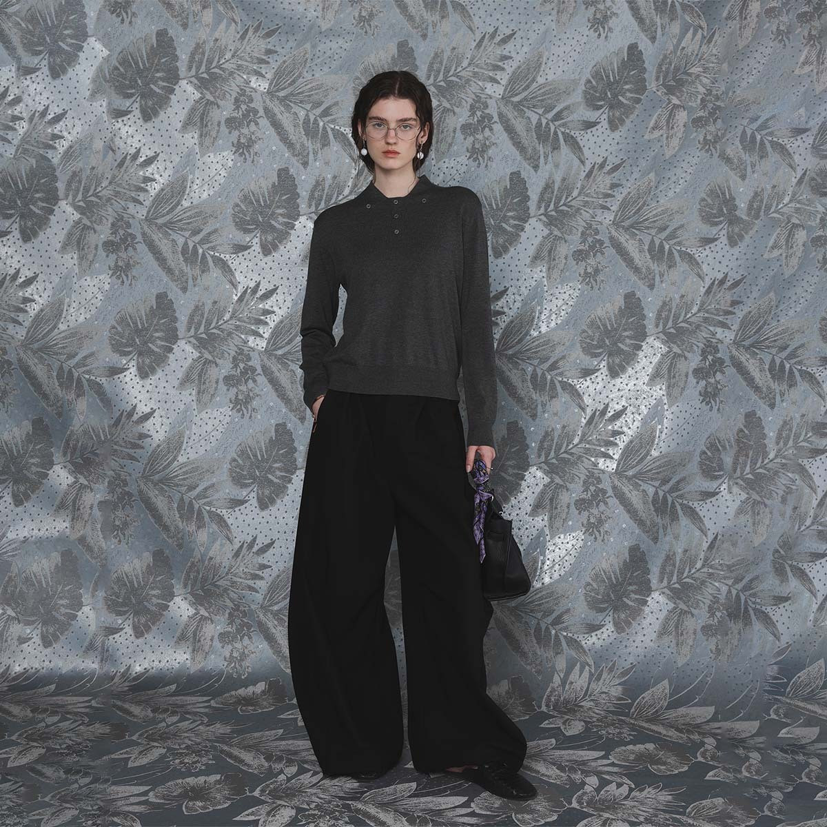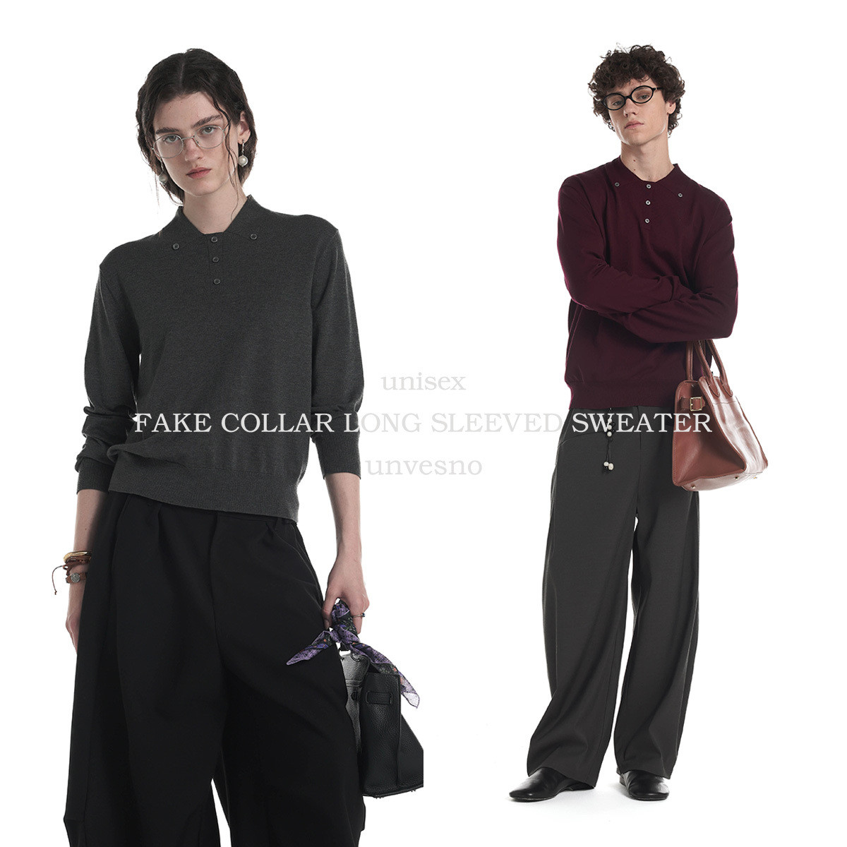 📚 【100%莱赛尔】Unvesno(UN)老钱Pra风假翻领毛织百搭polo衫毛衣秋