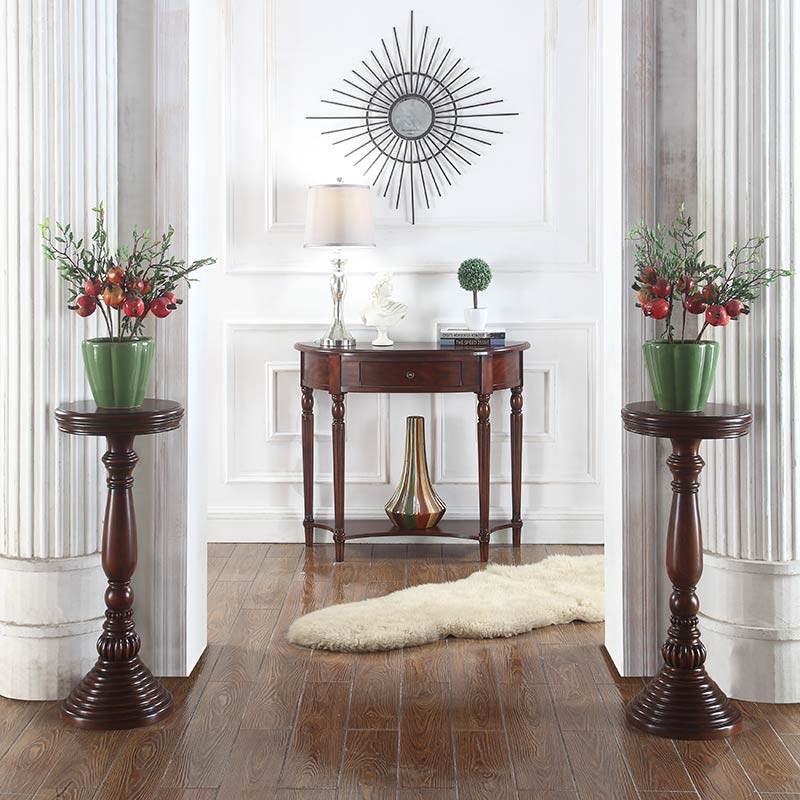 📚 美式实木花架花几仿古典圆形落地客厅盆景架欧式花台室内高脚架子