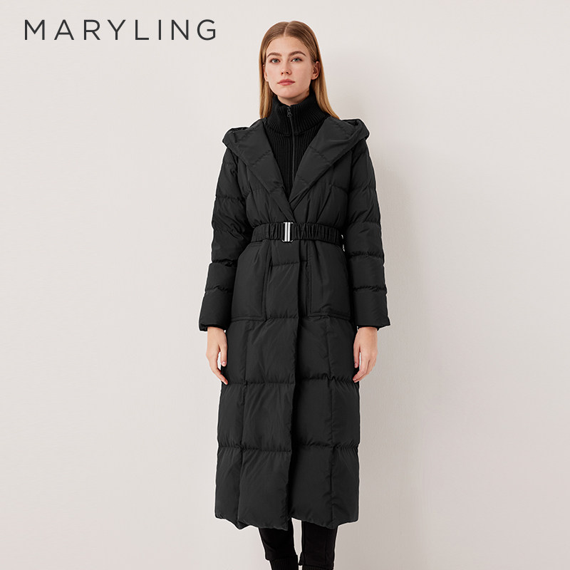 📚 MARYLING玛俪琳2025冬季新品黑色针织拼接长款羽绒服A1FHW98110