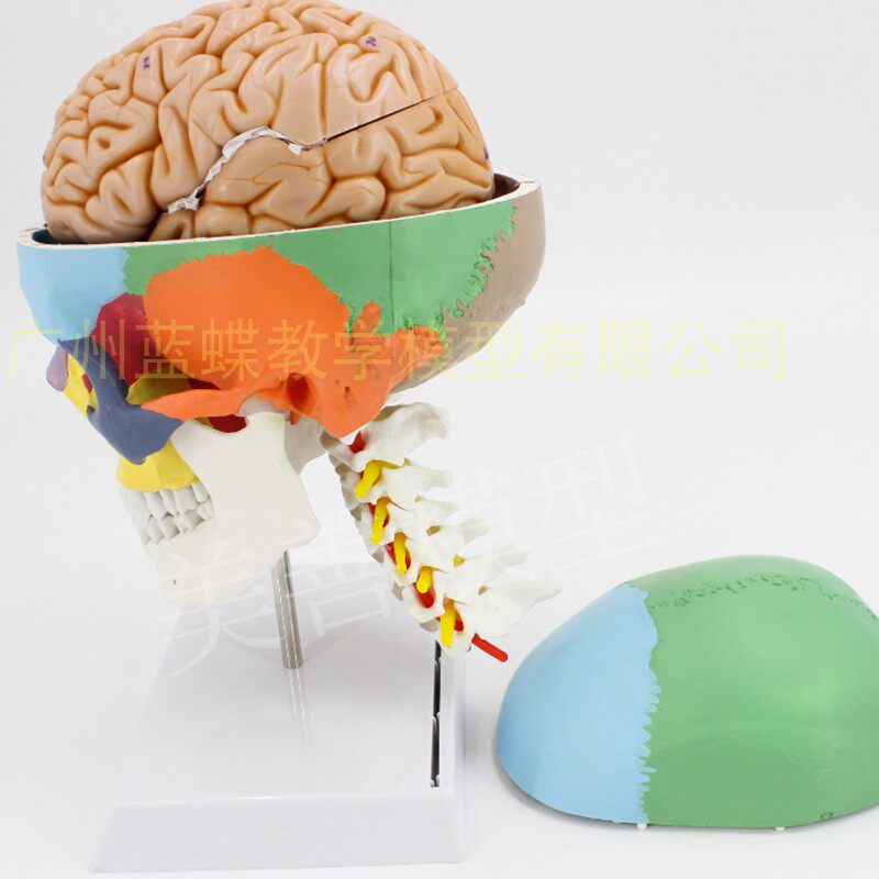 📚 极速人体头骨模型 1:1 仿真头颅骨模型 彩色头骨附颈椎及脑模型