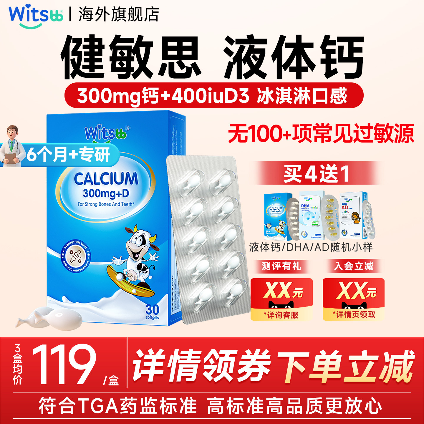 📚 witsbb健敏思液体钙儿童钙补钙婴幼儿童柠檬酸钙D3k2官方旗舰店