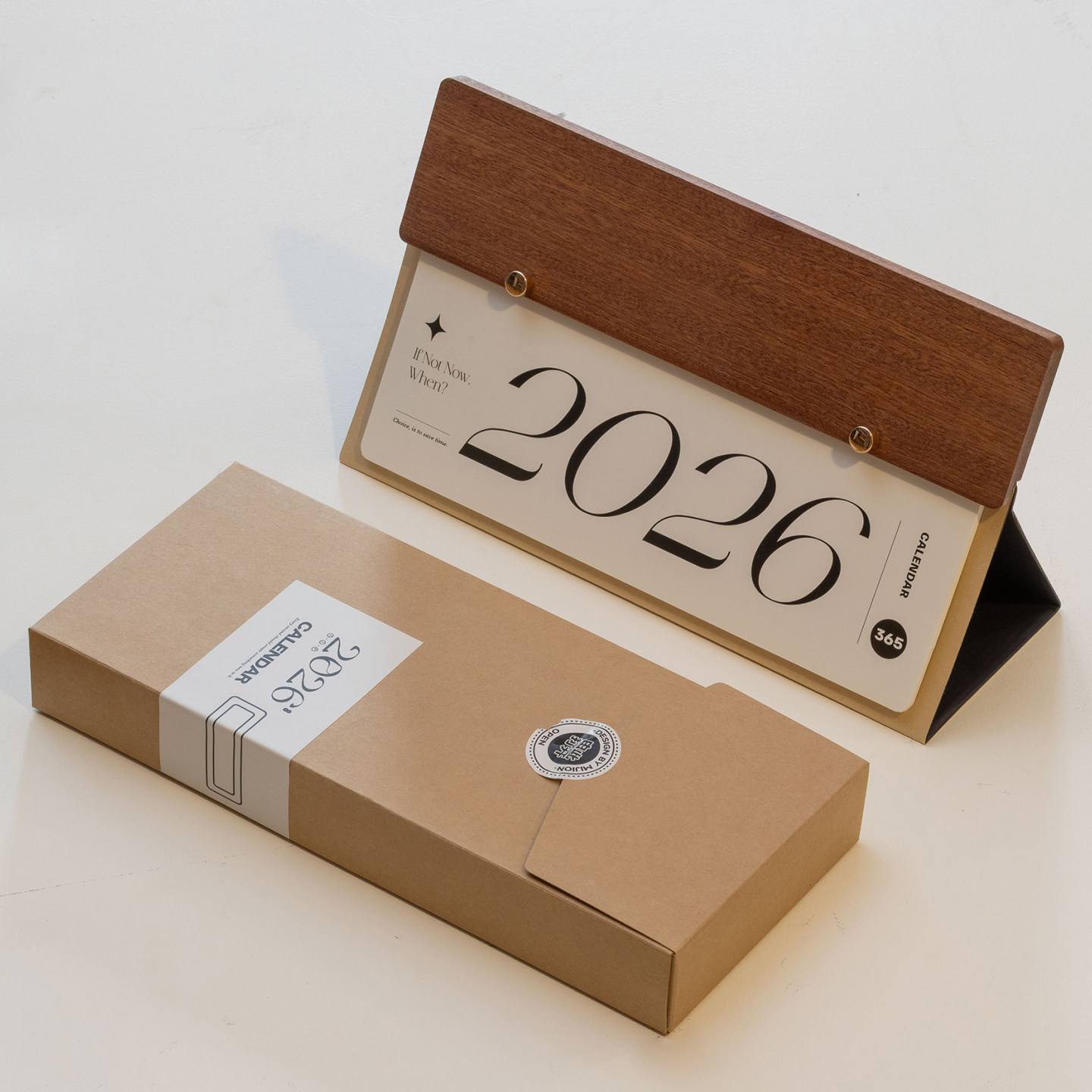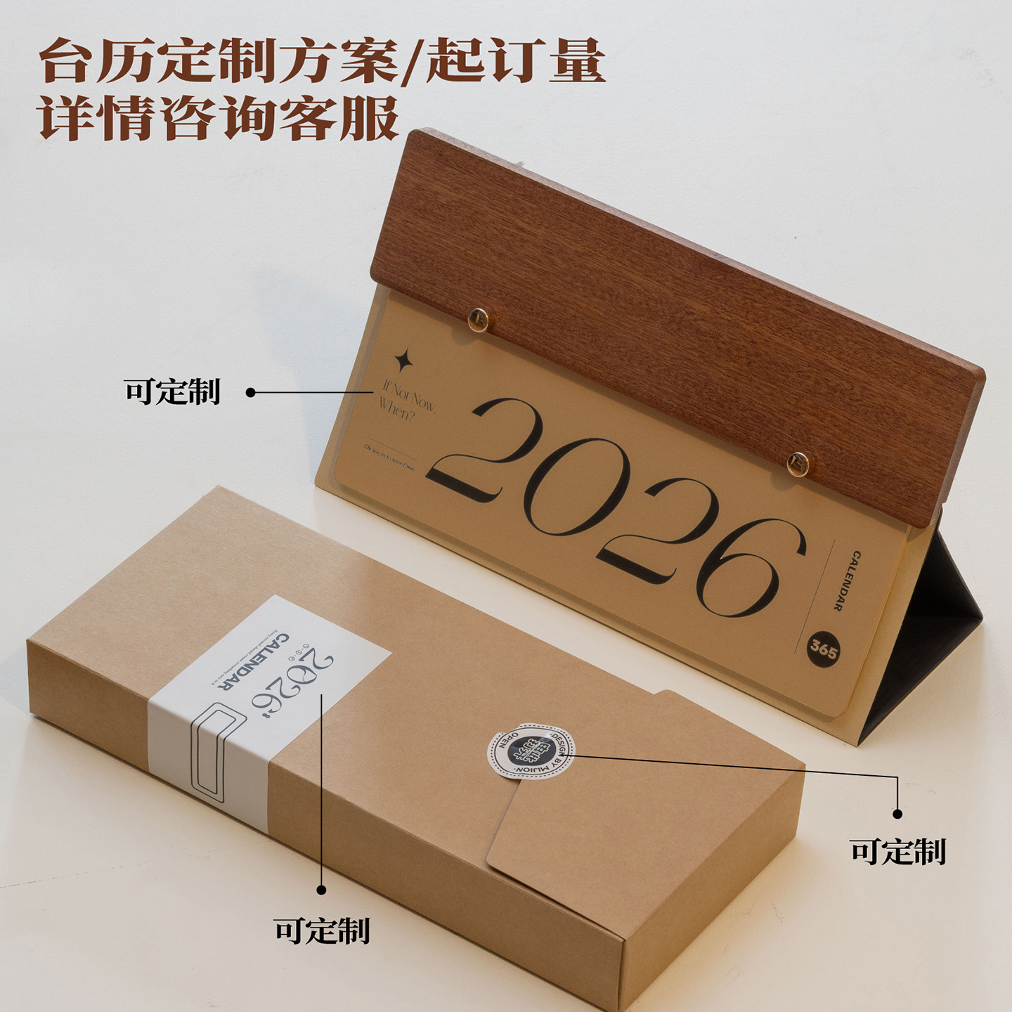 📚 2026年新款木质台历定制马年创意2025日历桌面摆件办公室翻页月历