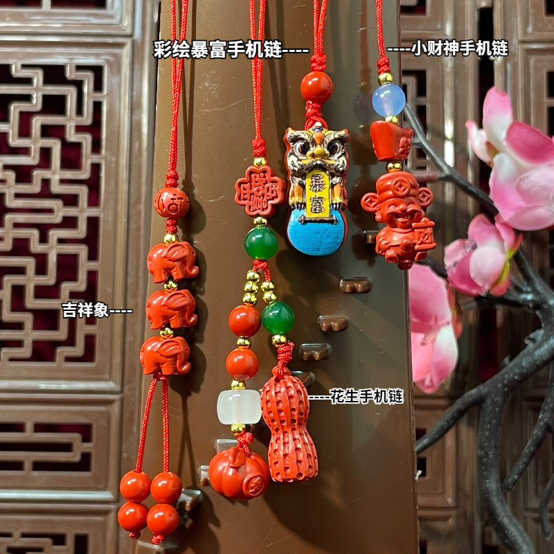 💥天然朱砂高含量高纯度手机链!🎉暴富花生吉象小财神!券后价仅18.8!💖