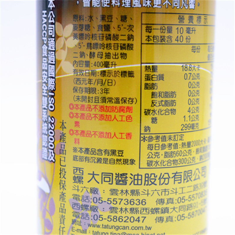📚 台湾进口大同黑豆酱油西螺纯酿造薄盐酱油无麸质无碘生抽蘸酱调料