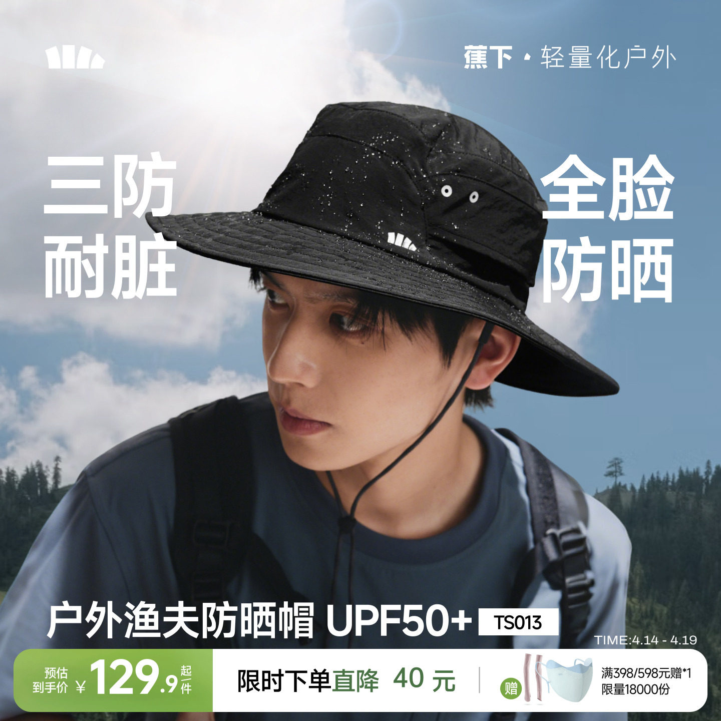 📚 蕉下男士渔夫帽户外防紫外线遮阳帽男轻薄透气防水徒步钓鱼登山帽
