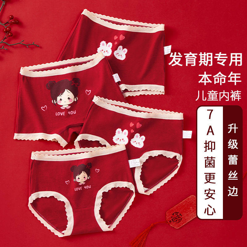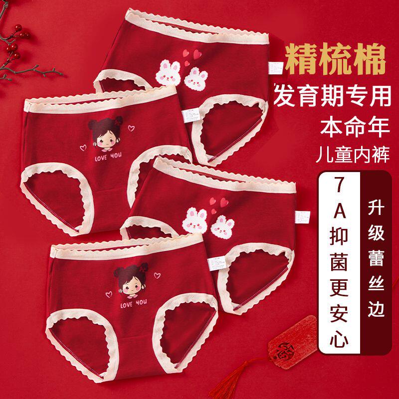 📚 儿童内裤女童红色纯棉本命年大红宝宝a类全棉四角三角裤12岁马年