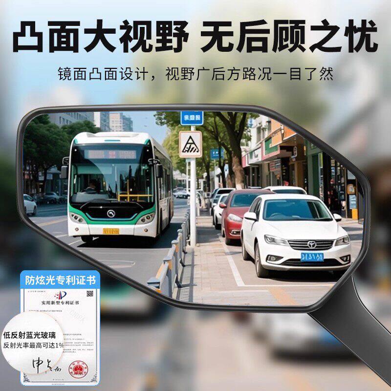 📚 电动车后视镜通用摩托车踏板电瓶车反光镜大视野超广角凸面倒车镜