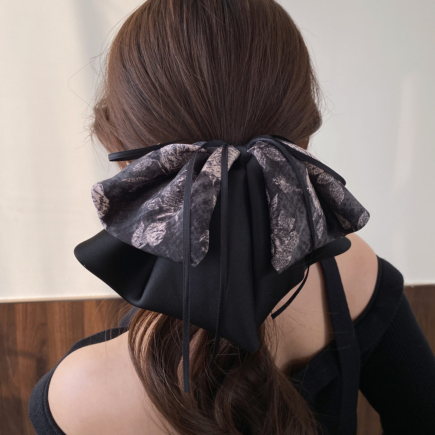 📚 国风水墨画蝴蝶结飘带抓夹女轻奢高级感后脑勺发夹显发量马尾夹子