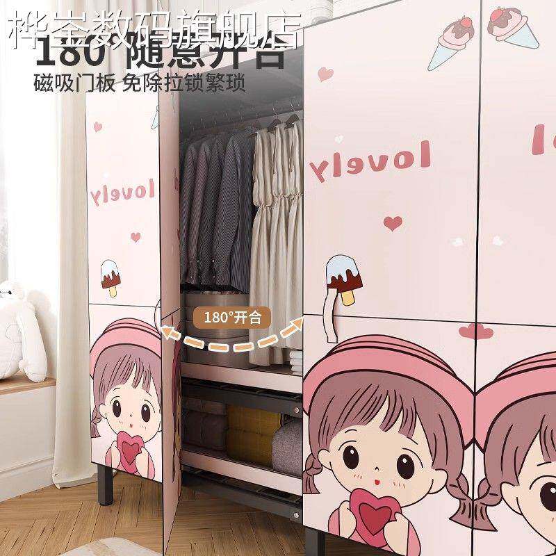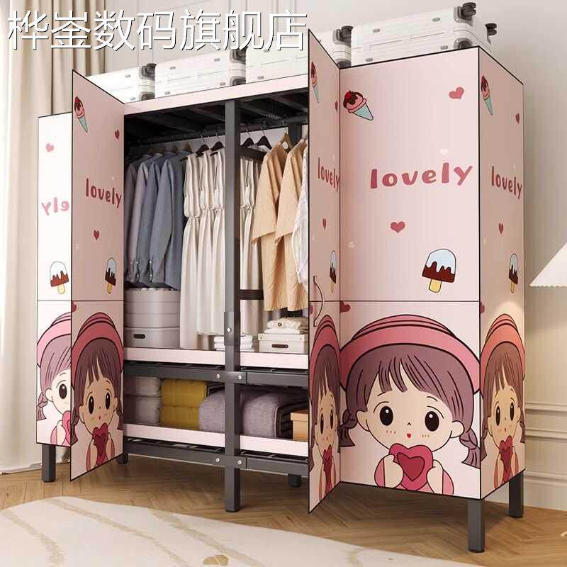📚 桦崟简易衣柜折叠加粗家用结实耐用安装出租房钢架一体衣橱卧室布衣柜摆件垫垫床笠拉车