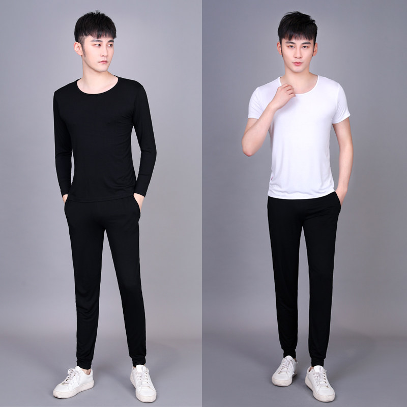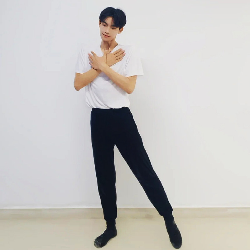 📚 男士舞蹈服形体服艺考男套装现代舞莫代尔短袖白色上衣成人练功服