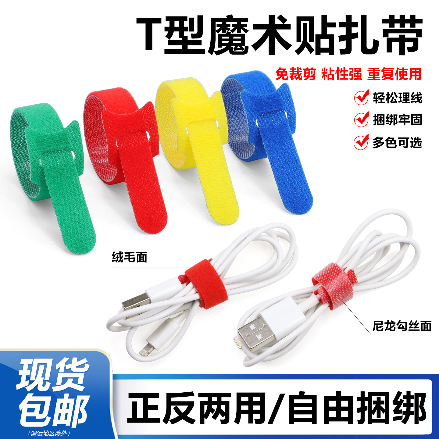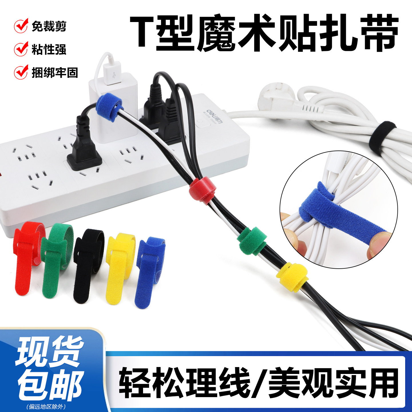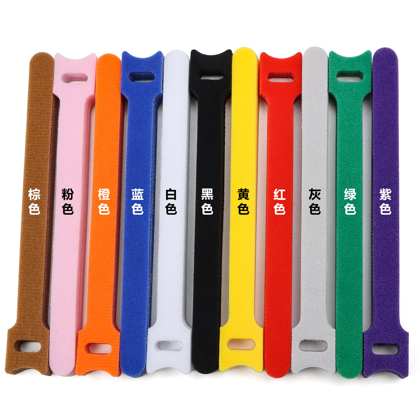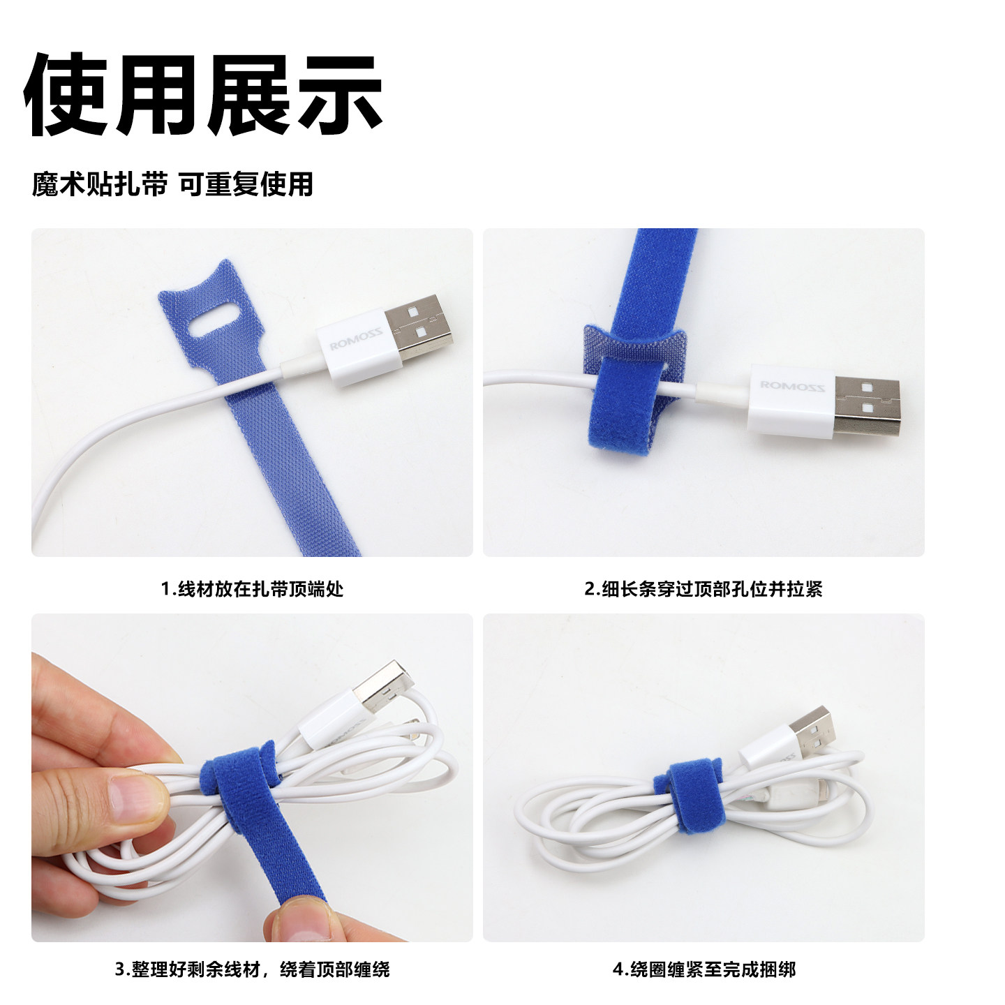 📚 自粘魔术贴背对背理线带猫头针型带孔位防脱落绑线带黑白蓝绿扎带