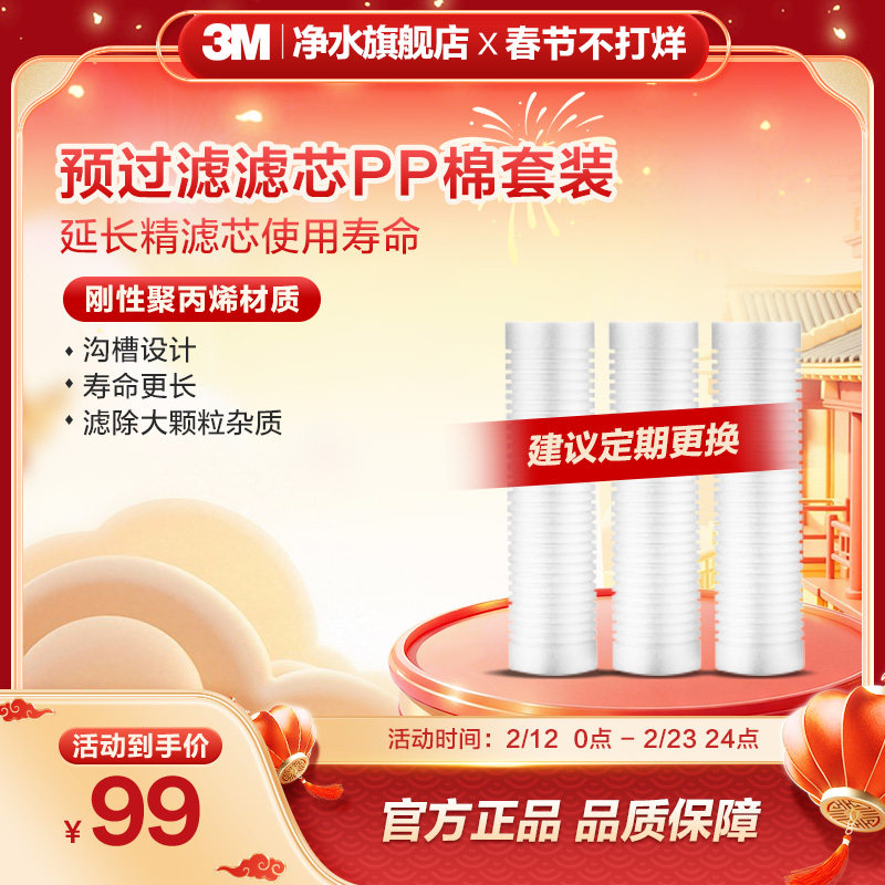 📚 3M滤芯PP棉3只装套装前置过滤器通用10寸置入式净水器家用旗舰店