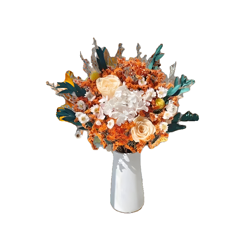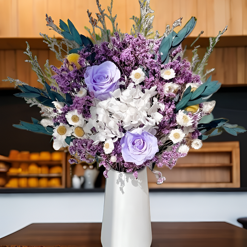 📚 永生玫瑰尤加利干花花束高级感真花绣球满天星水晶草桌面装饰摆件