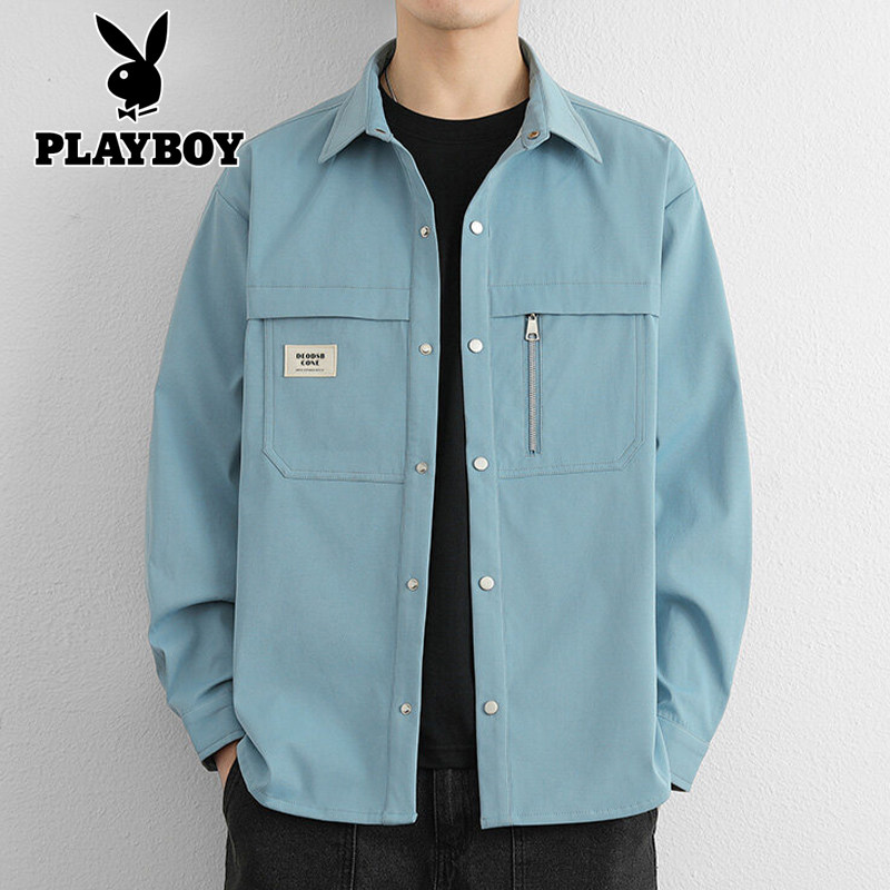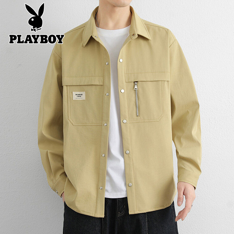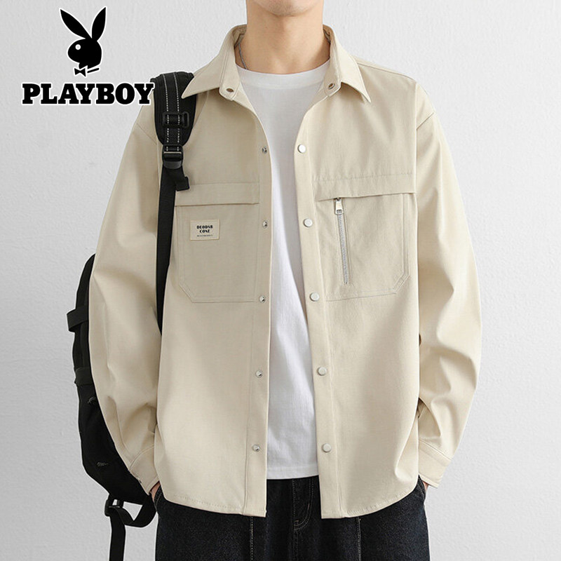 📚 花花公子工装衬衫男长袖春季2026新款上衣服休闲百搭衬衣夹克外套