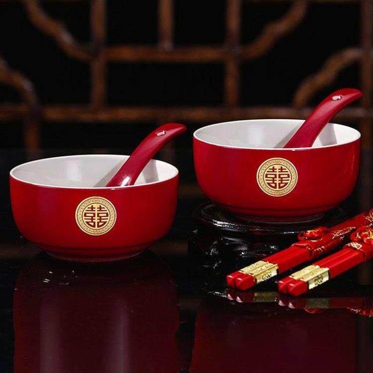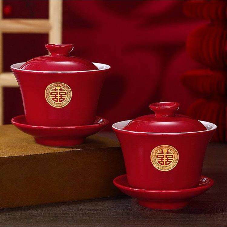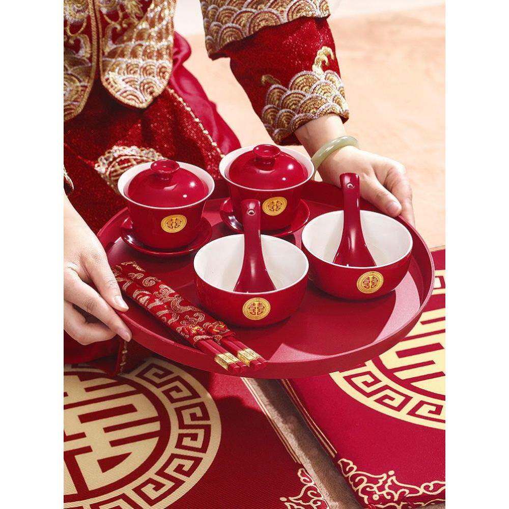 📚 敬茶杯子喜碗结婚礼喜事红色改口盖碗茶具对碗筷套装陪嫁用品大全