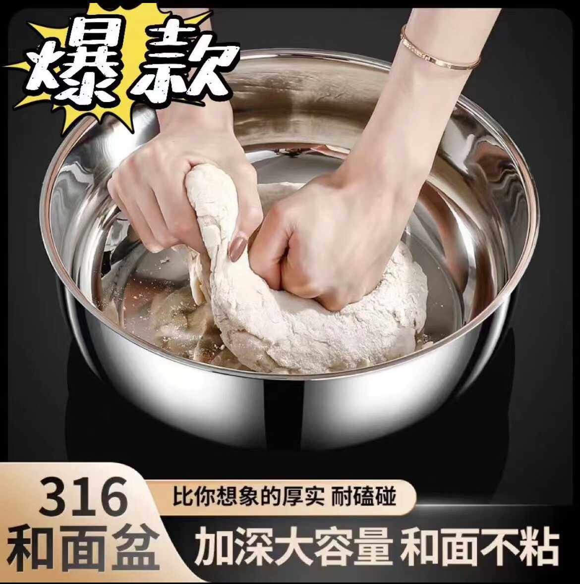 📚 316不锈钢和面盆厨房家用揉面发面盆打蛋圆盆多功能洗菜料理汤盆