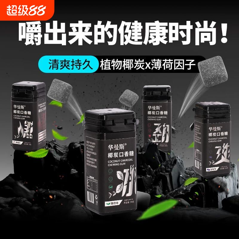 📚 椰炭口香糖维C清新口气接吻糖果木糖醇薄荷糖瓶装薄荷味健康罐装