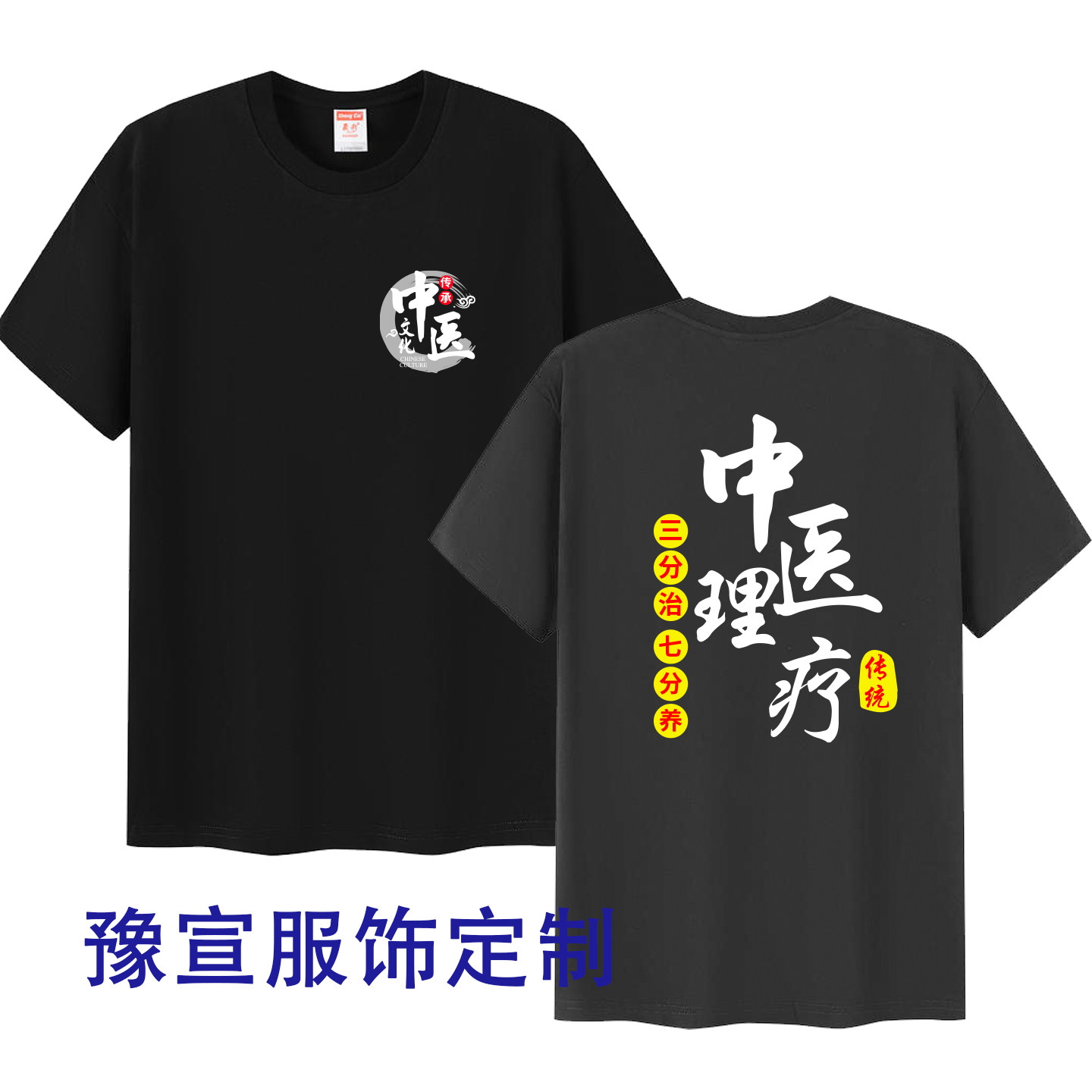 📚 中医养生馆推拿按摩店男女技师理疗师工作服装短袖纯棉T恤印logo