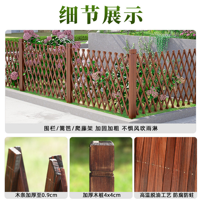 📚 防腐木栅栏围栏护栏木篱笆碳化宠物围栏户外网格花架隔断伸缩拉网