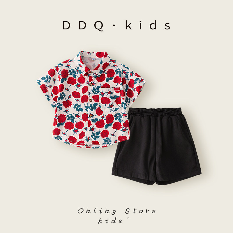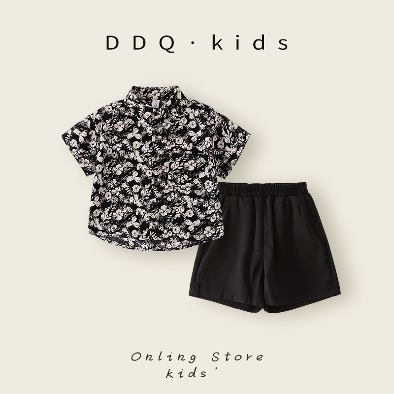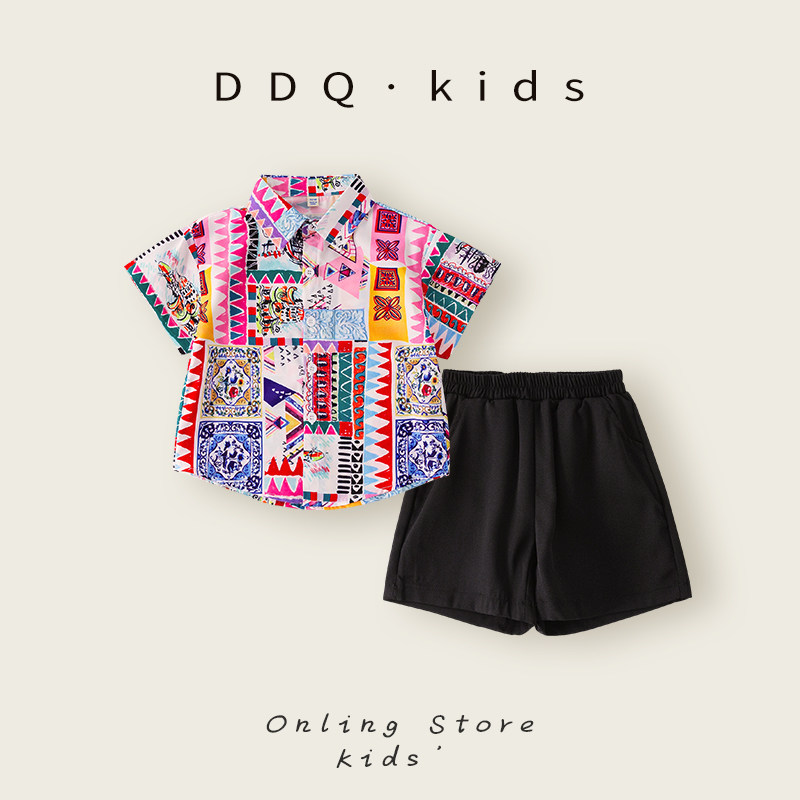 📚 男童2025新款夏季套装花衬衫港风沙滩夏威夷穿搭儿童海边度假套装