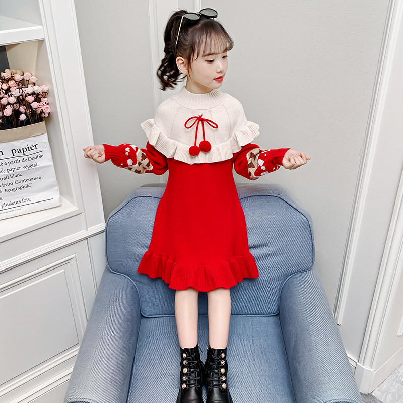 #女童毛衣裙 #秋冬新款 #针织衫外套 #中长款 #洋气套头 #新年裙 #券后价68元