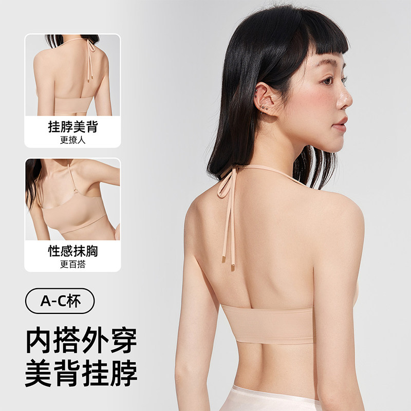 📚 猫人挂脖美背内衣女防走光抹胸小胸聚拢防下垂文胸罩2026新款爆款