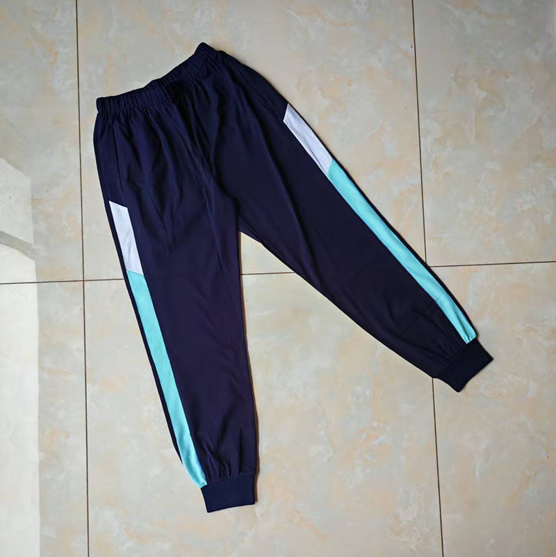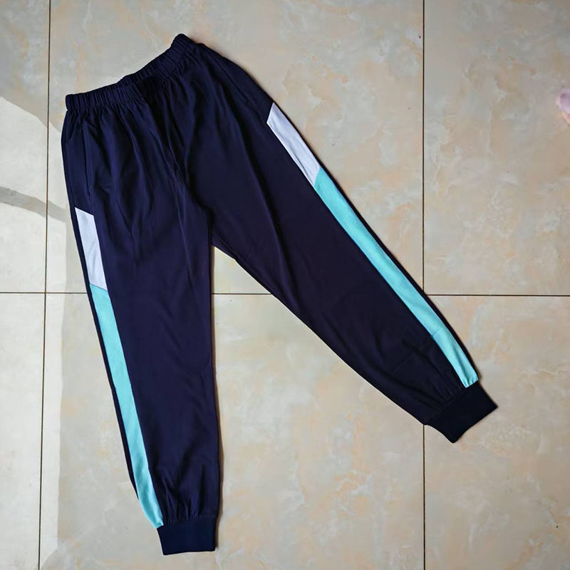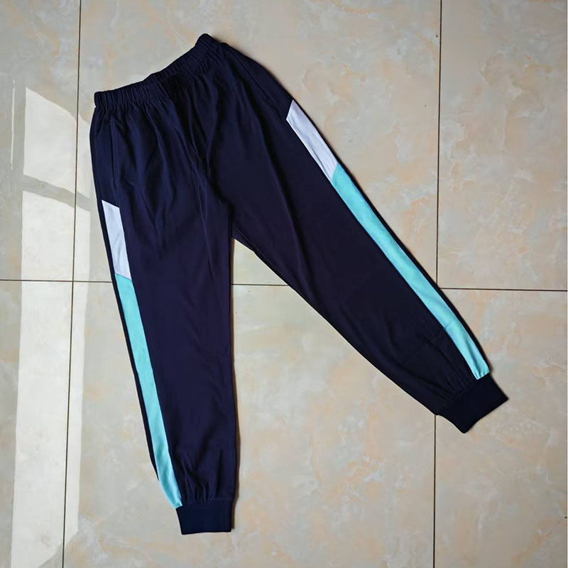 📚 藏蓝色宽藏蓝斜拼宽白加薄荷绿螺纹束脚加绒加厚运动直筒校服裤子