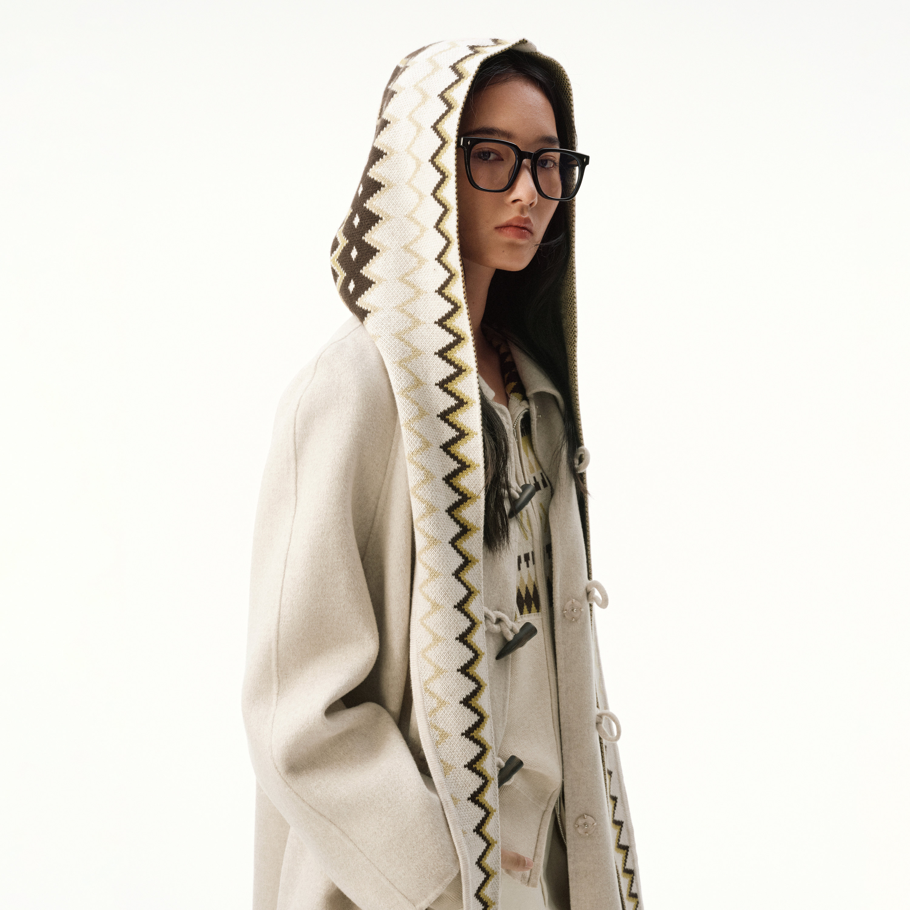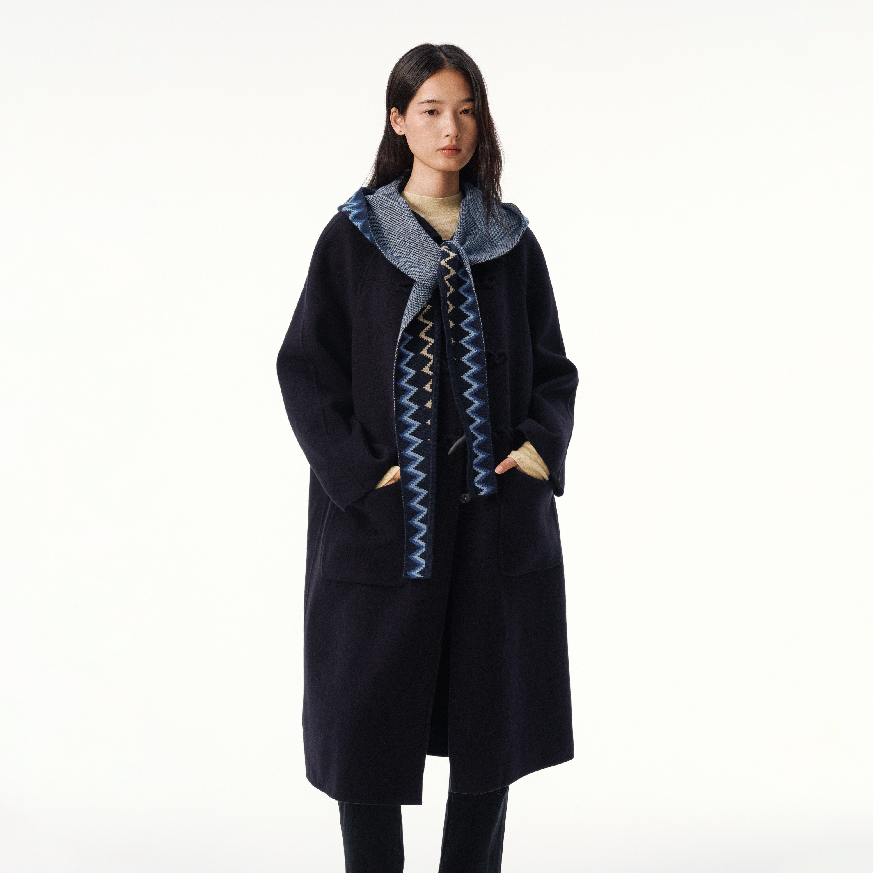 📚 【羊毛】播中长款宽松连帽毛呢外套女冬季气质大衣DDS4AD5114