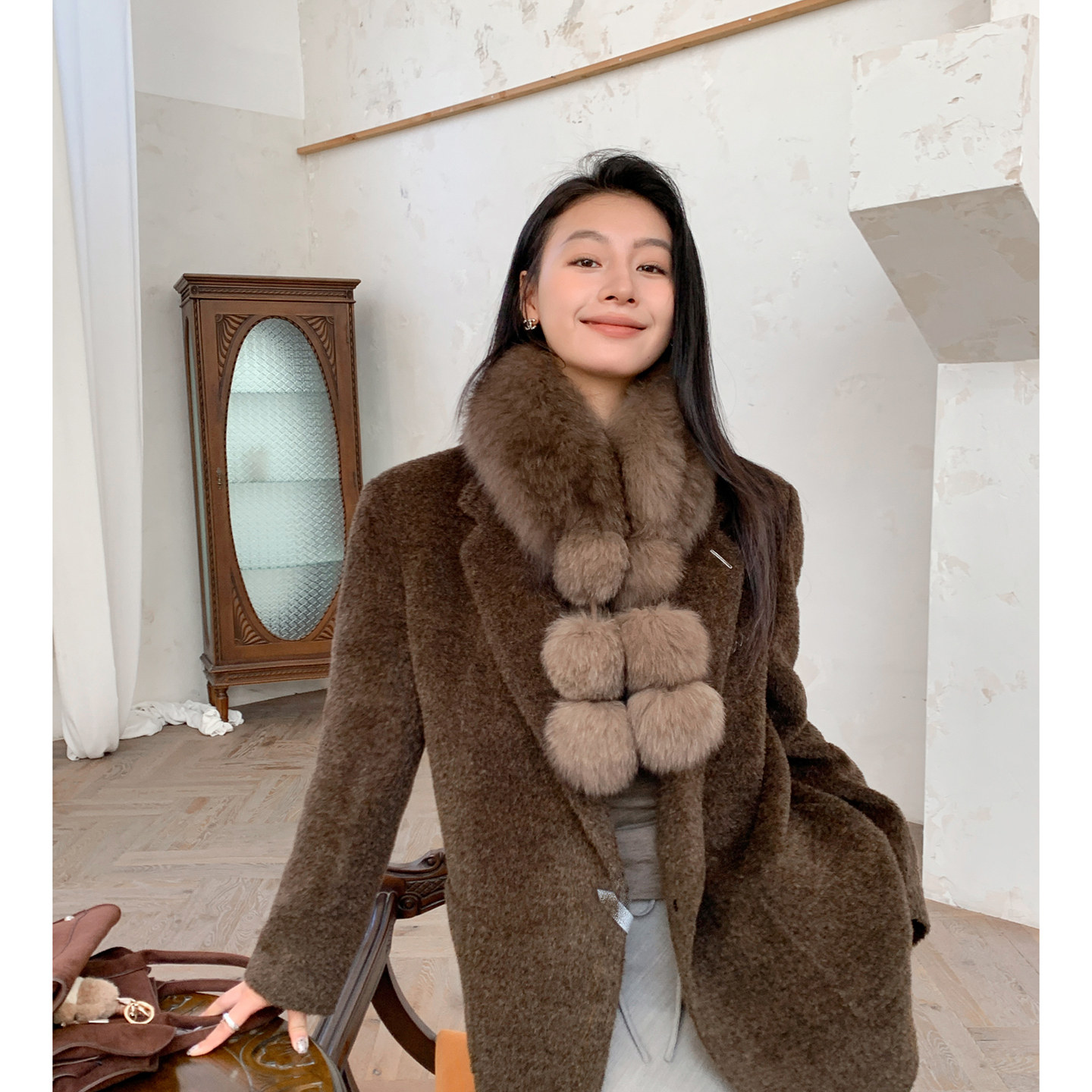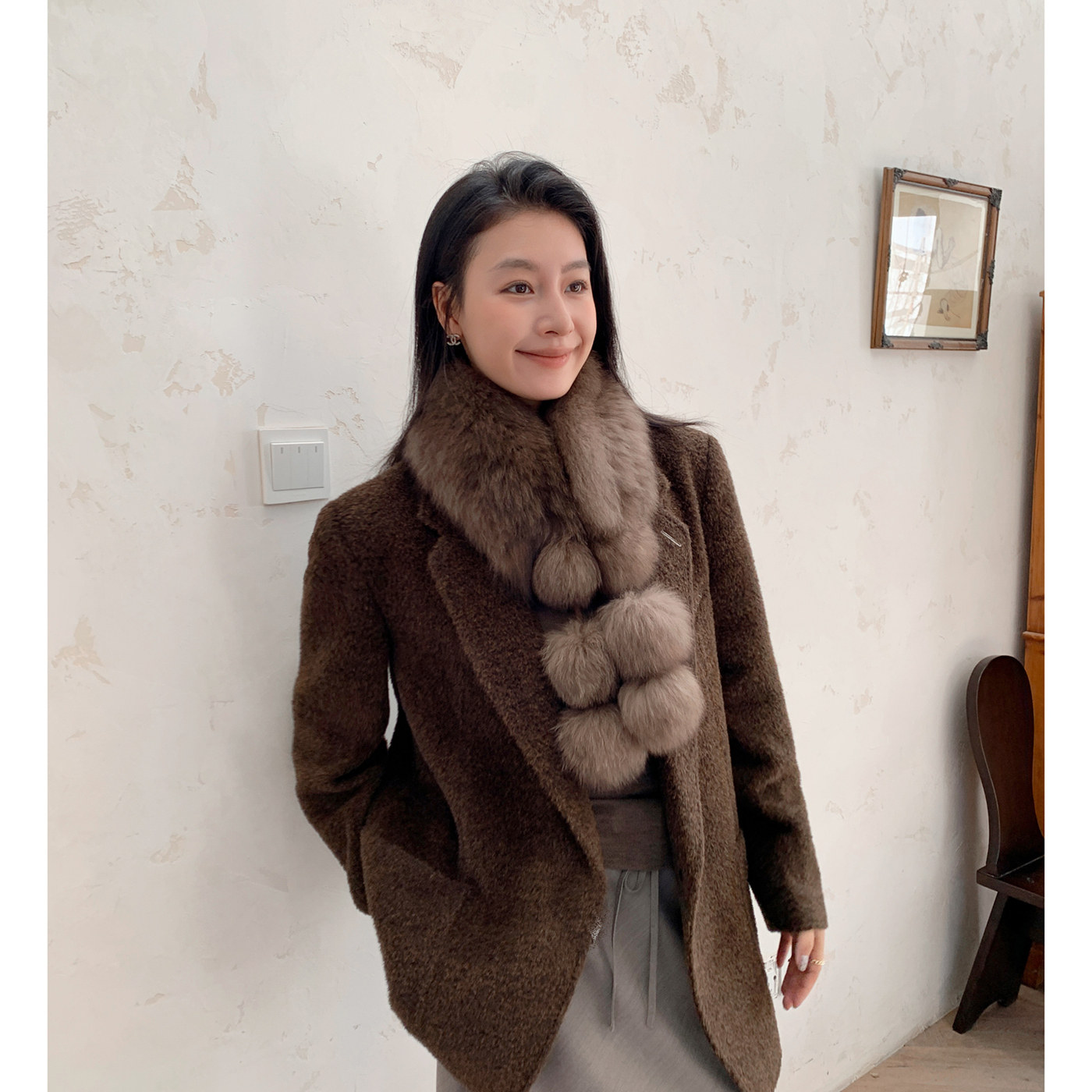 📚 【球球围巾】整皮编织狐狸毛真毛长款围巾韩系皮草真毛毛围脖可爱