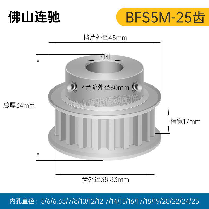 📚 S5M25齿 同步带轮凸台 槽宽17 BF型 同步皮带轮齿轮铝25S5M150-B