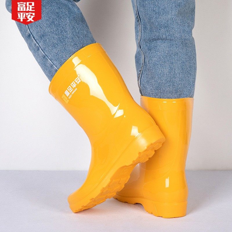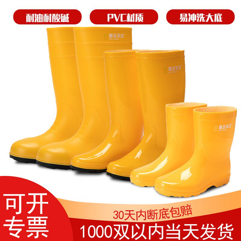 📚 富足平安猪场易冲洗水鞋塑胶黑色雨鞋男劳保高筒防滑耐磨雨靴胶鞋