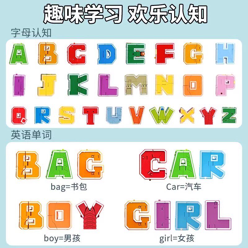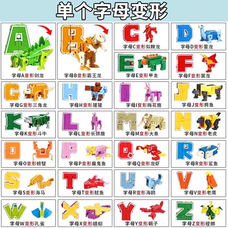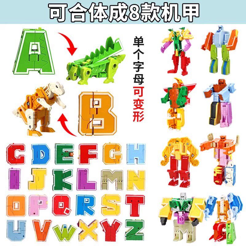 📚 新乐新数字字母变形玩具套装26英文字母恐龙四合体儿童变形机器人