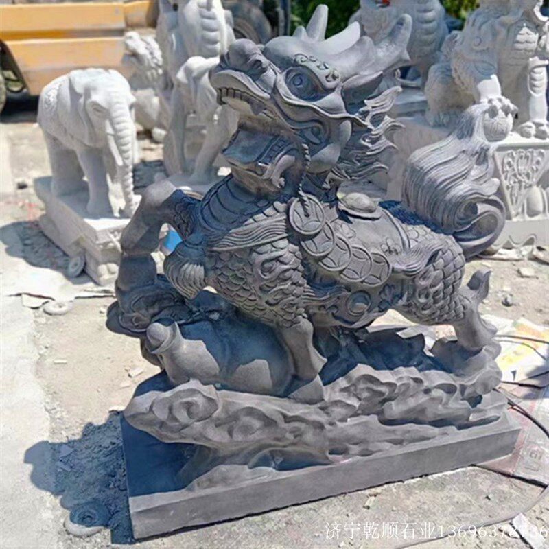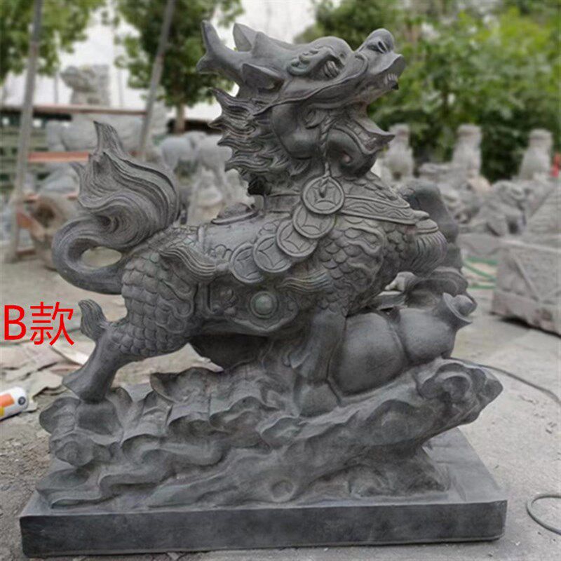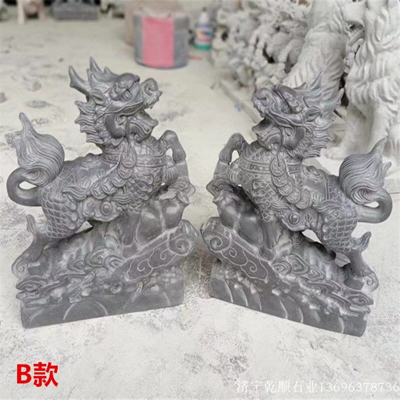 📚 青石麒麟一对看门青石跑麒麟家用公司门口庭院摆件天然原石头雕刻
