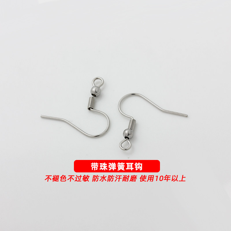 📚 不褪色316钛钢不锈钢耳钩带珠弹簧压扁耳勾法国勾耳饰DIY耳环配件