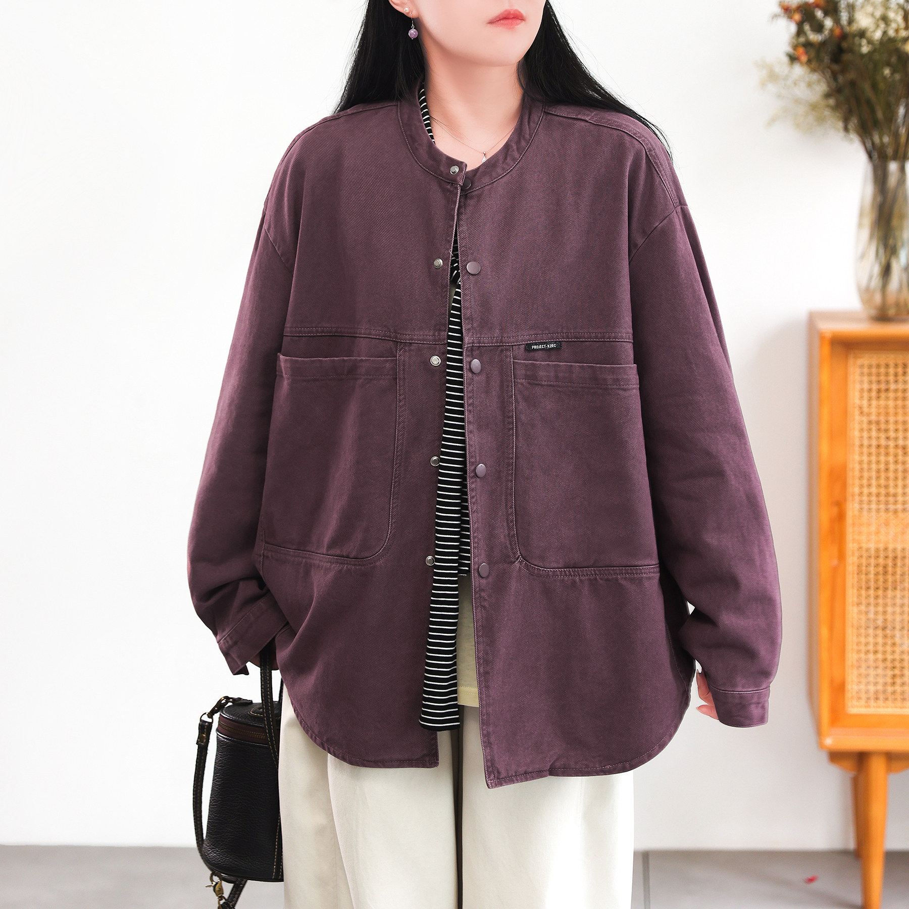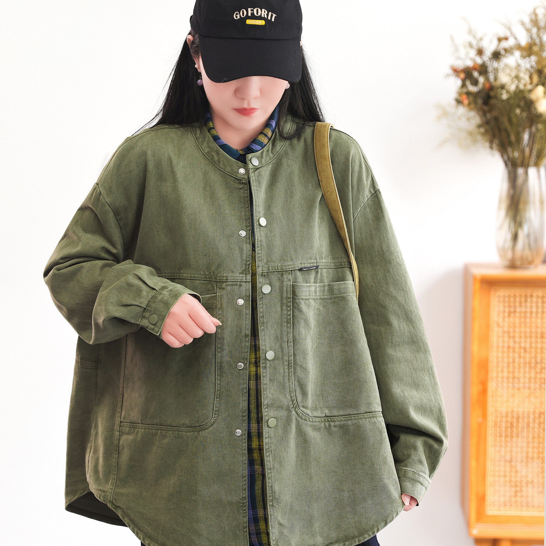📚 绿素棉 水洗斜纹全棉衬衣外套女 男友风流浪自然风大码衬衫夹克春
